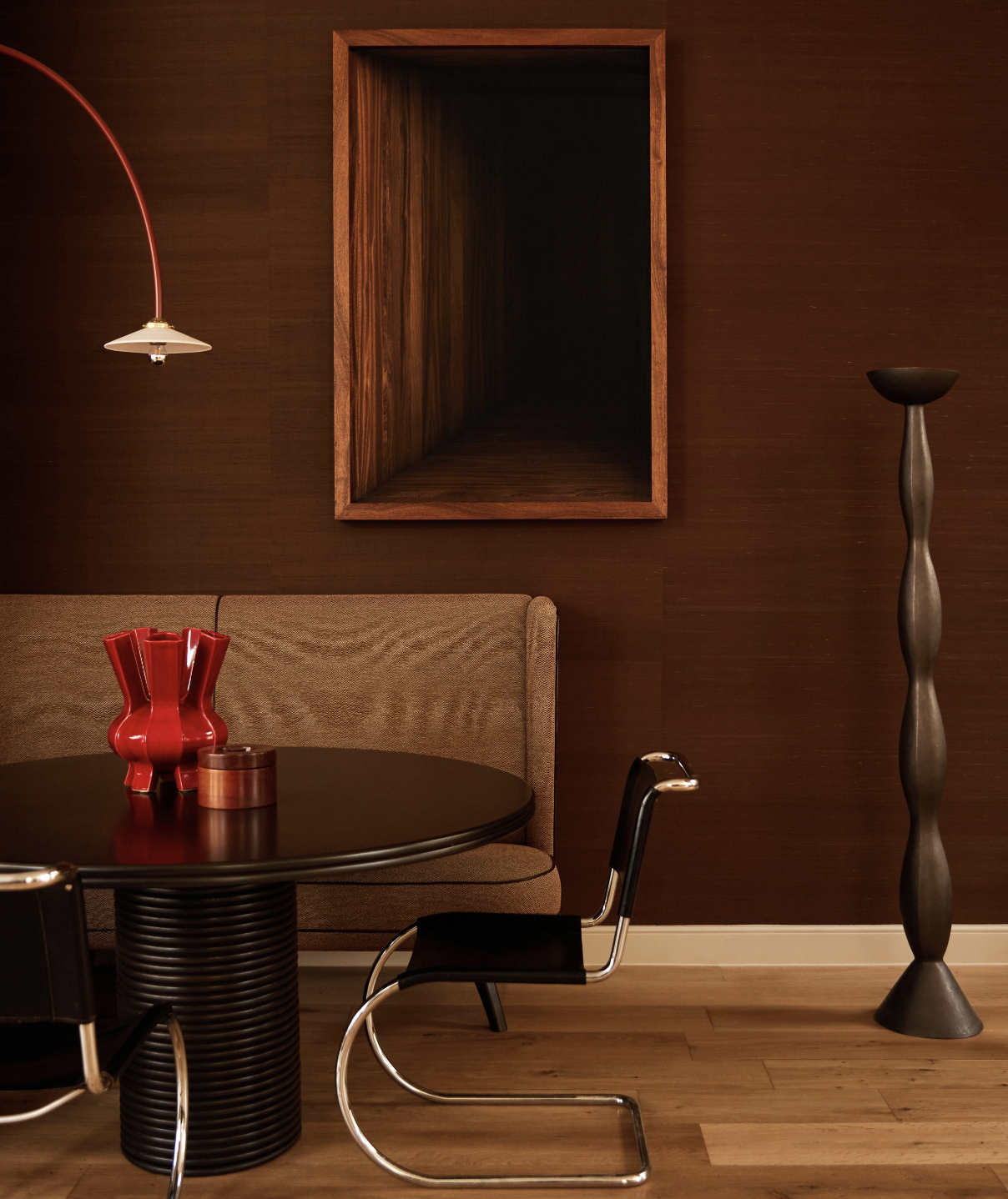 Breakfast nook and millwork in Farrow & Ball’s Red Earth